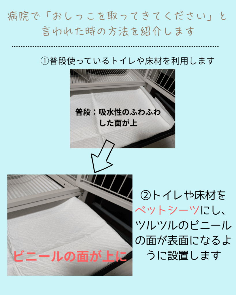 おうちでの採尿方法(おしっこの取り方) 2026年3月3日 最終更新日時 : 2026年3月3日 momijiこんにちは!今回は、病院で「おしっこを取ってきてください」と言われた時のおうちでの採尿方法をご紹介します。ご参考になれば幸いです!